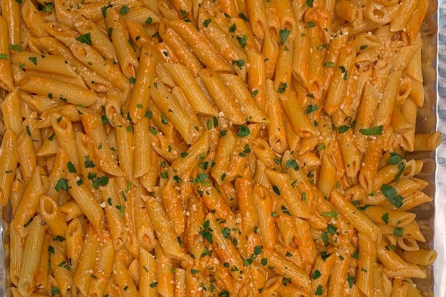 Food was delivered on time and the office enjoyed the chicken franchise and penne vodka