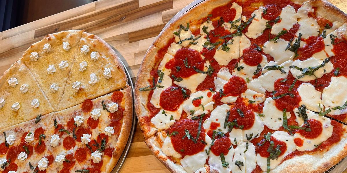 Big New York sized slices, the garlic knots were so dang good my mouth is watering just thinking about them. Service was good and timely.