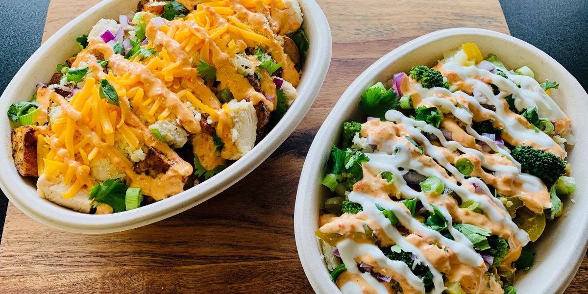 Ordered the build your own baked potato bar with grilled chicken, broccoli, corn, black beans and cheese. It was a huge hit. The potatoes are huge!